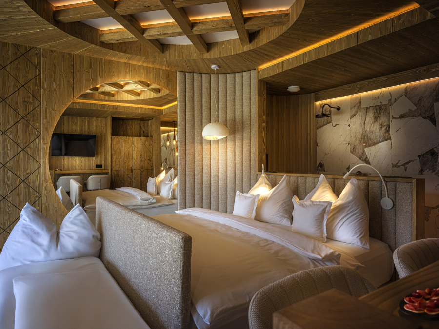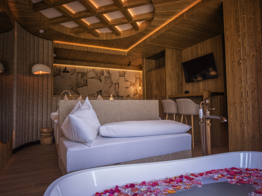• Voľne stojaca oválna vaňa priamo v spálni - s famóznym výhľadom na hory